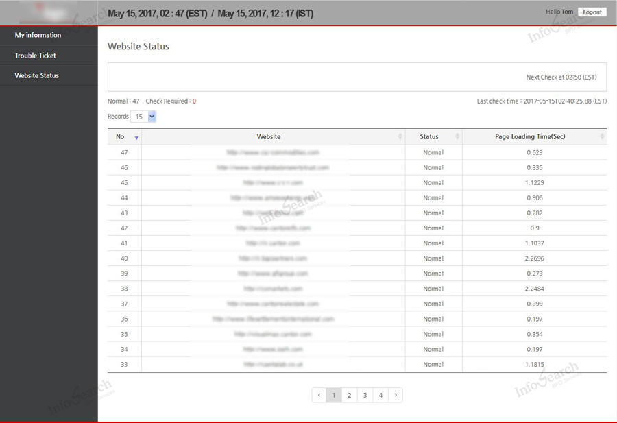 There are around 45 websites hosted by the client for various business activities and these are hosted in 3 different servers. The websites are required to be operational and available for the maximum time and it requires 24x7 monitoring. The real challenge is to monitor all the websites for uptime and monitoring them manually is practically not possible. The other challenge is to contact the respective hosting company to sort out the issue. It’s also required to ensure daily updates on shares are getting uploaded at a stipulated time every day. If not, it should be notified to the concerned person for further action.